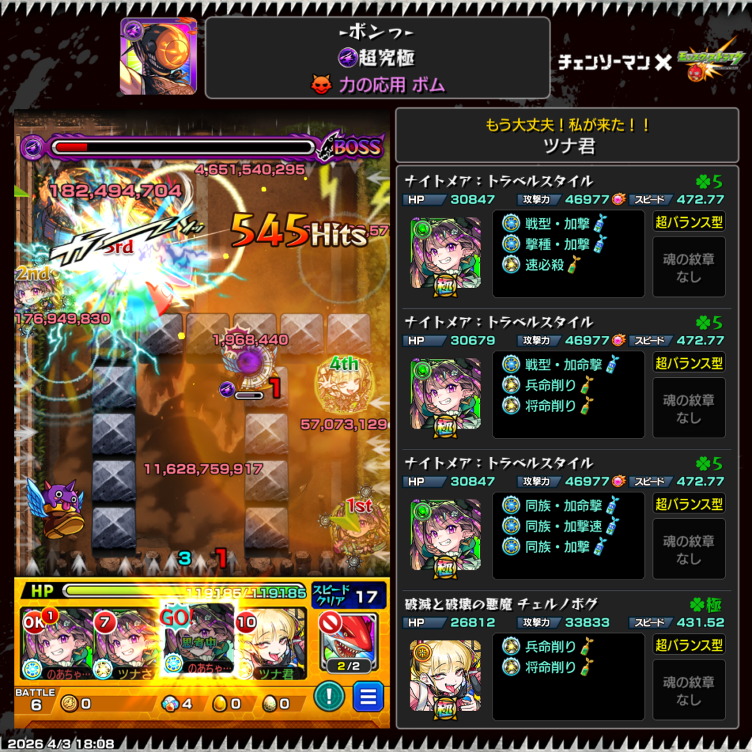 超究極「ボム|力の応用」は、『チェンソーマン』コラボで登場した期間限定のクエストです。