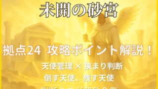 未開の砂宮・拠点25の攻略解説。透過パネルの踏み枚数管理と攻撃アップバブルを敵に当てない立ち回りが攻略のカギ。実際のクリア編成とステージごとの動きをもとに、安定突破のポイントを詳しく解説します。