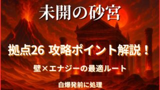 未開の砂宮・拠点26の攻略解説。カウントブーストウォールとエナジーコンテナを組み合わせた最適ルートを実体験ベースで解説。ギャラクシーの白爆発対策、壁回数管理、エナジー取得順まで詳しく紹介します。
