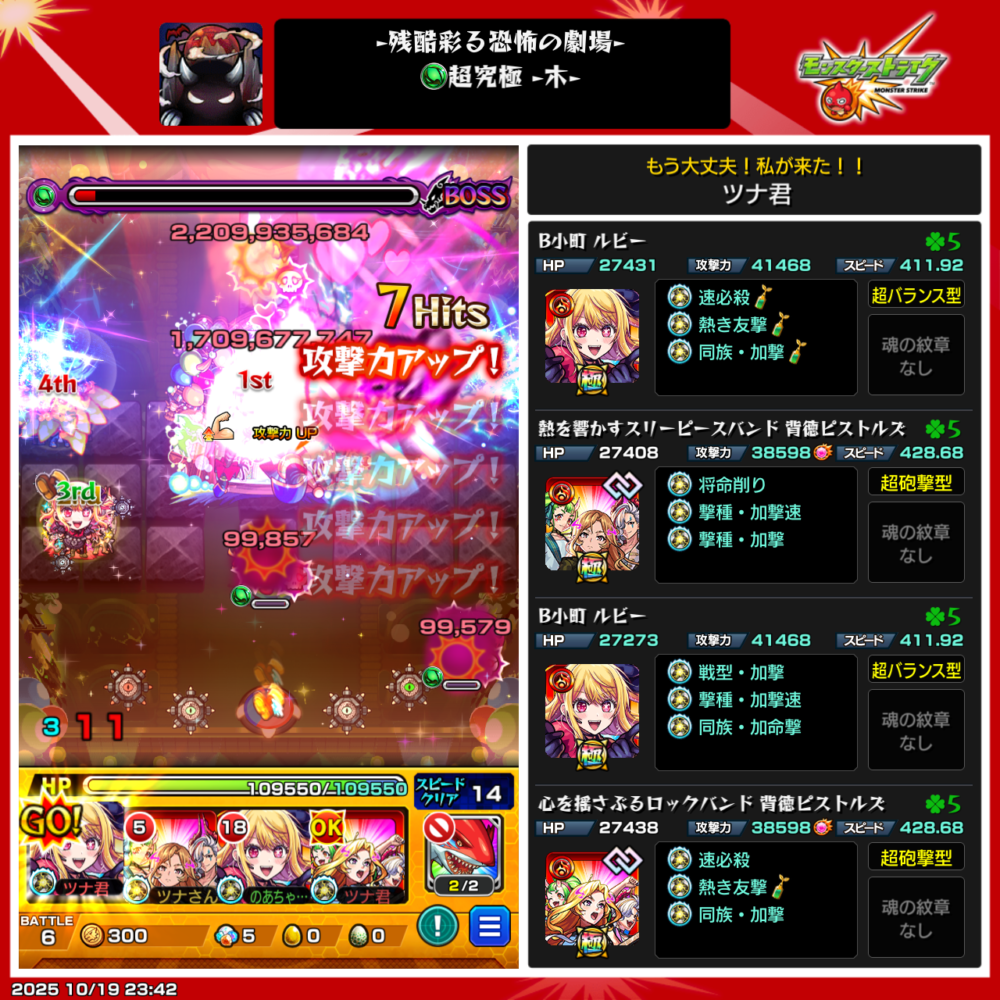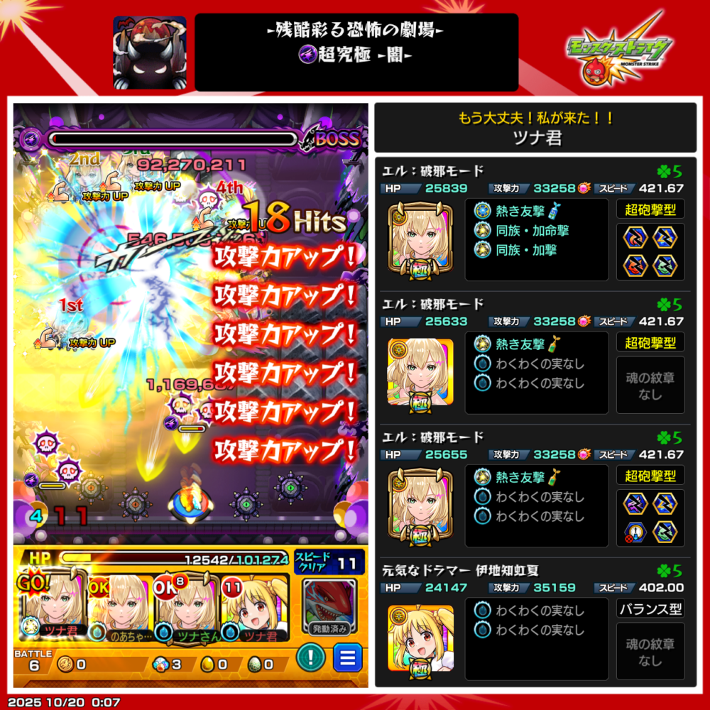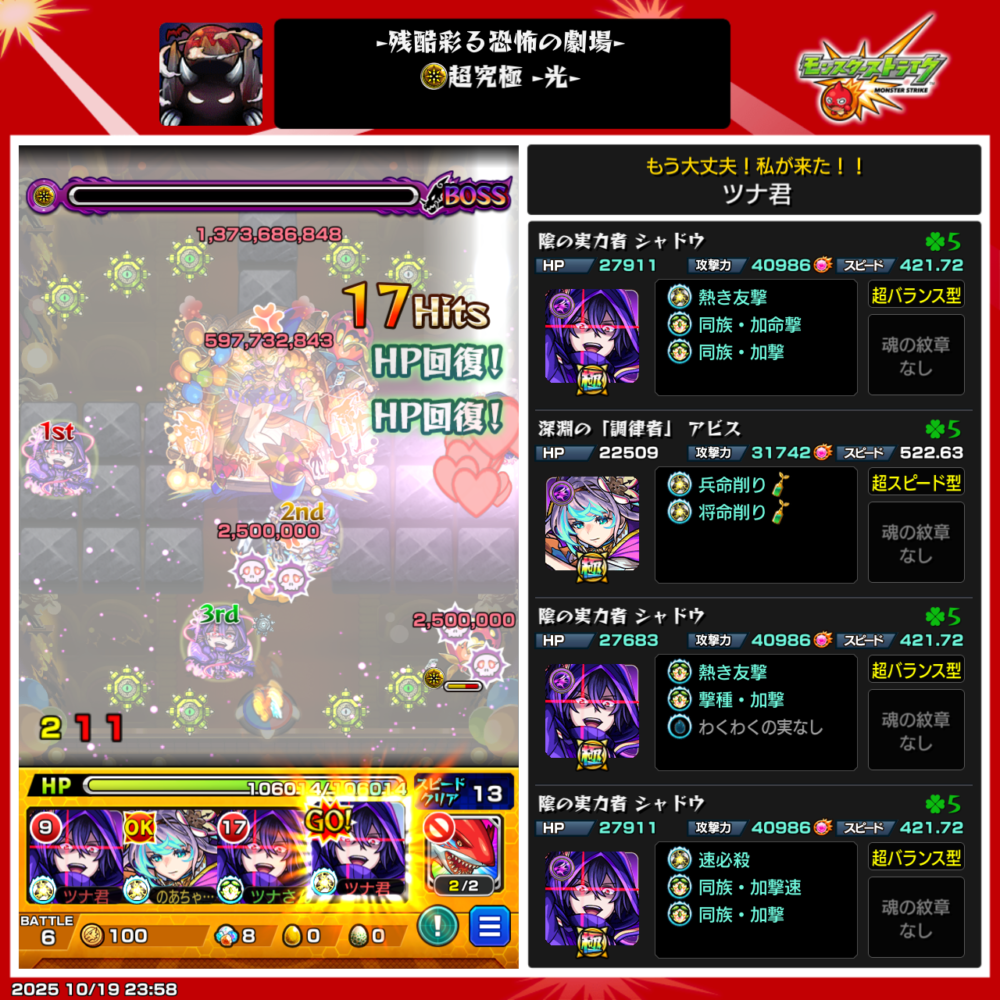 - さらに味方の友情コンボも重なり、ボスステージ1を撃破!