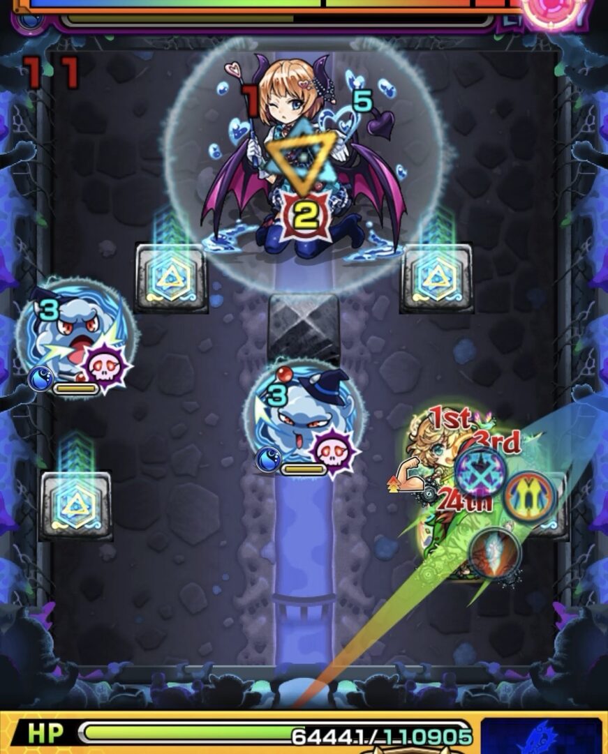 - このターンも鬼の危険な攻撃がないため、弱点攻撃力アップパネルを複数踏みながら鬼を攻撃しました。