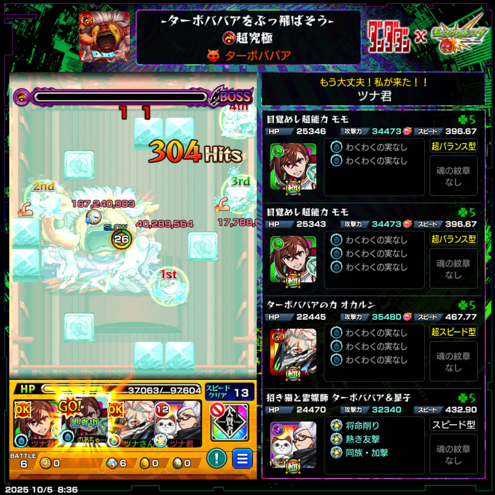 【モンスト攻略】超究極「ターボババアをぶっ飛ばせ!」|木属性2体+入手その他編成でミッション達成!