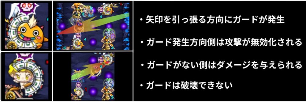 - 倒したいとき:ガードを外す(攻撃側に矢印を向けない)